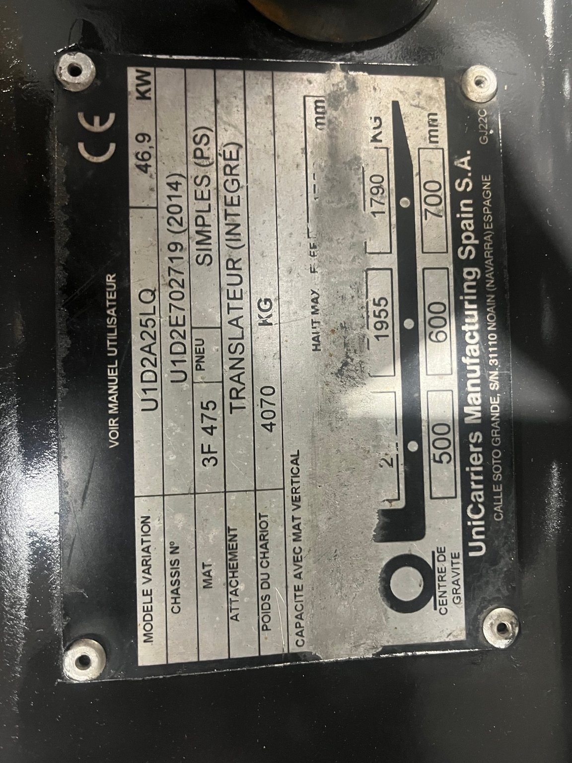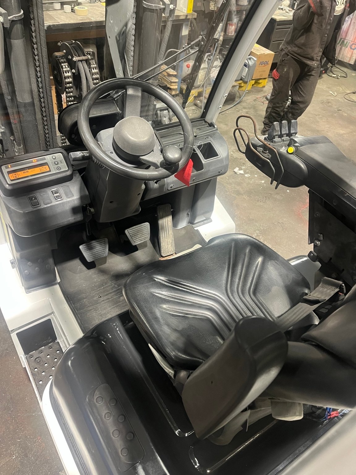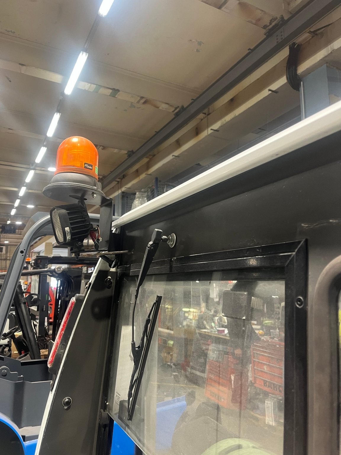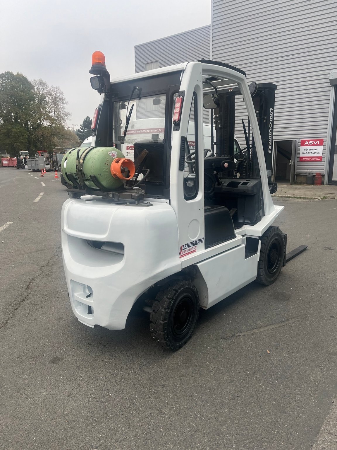 Chariot frontal Gaz capacité 2500 kg - Mat Triplex 4750/2145/1510 mm - TDLI - mini leviers - feu à éclats - Pack signalisation LED - pare brise avant arrière et toit - Support bouteille basculant