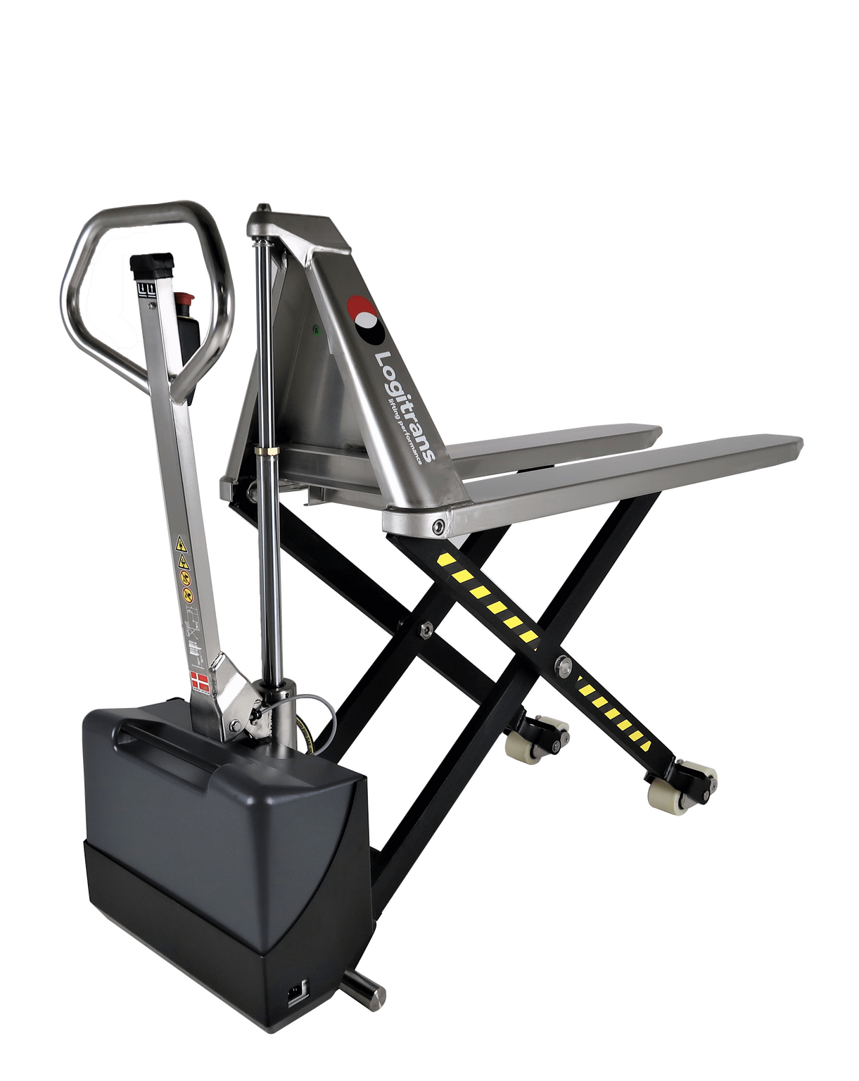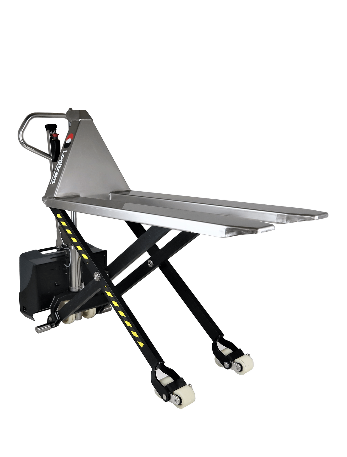 Le transpalette haute levée transporte et soulève la palette à hauteur idéale pour l'utilisateur tout en respectant, grâce à ses angles arrondis, l'espace de travail, les palettes et les marchandises. Sa construction réduit les accidents de travail et douleurs pour l'utilisateur. La sécurité et l'ergonomie de l'opérateur sont mises en avant. Par exemple le diamètre de prise du timon a été étudié pour réduire les douleurs aux poignets et aux épaules. Il répond aux exigences des industries pharmaceutiques et alimentaires.