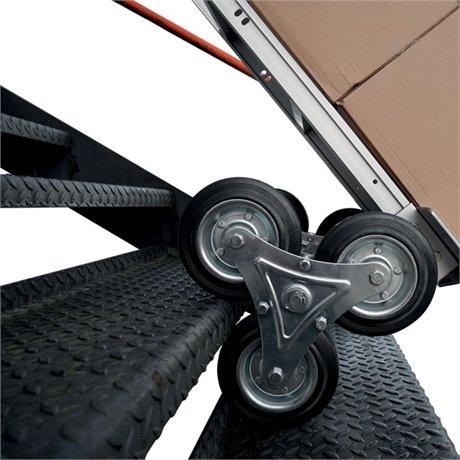 Ce diable en aluminium dispose de 3 roues durent qui lui offrent une durée de vie accrue ainsi qu'une résistance aux chocs répétés dans les escaliers.