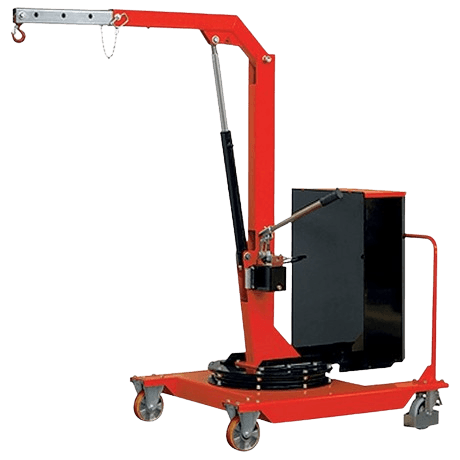 Cette grue est polyvalente et facile à utiliser. Elle possède une capacité de 500 kg, un poids de lestage intégré ainsi qu'un mât rotatif à 360°.