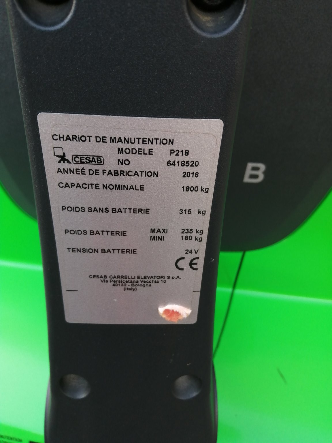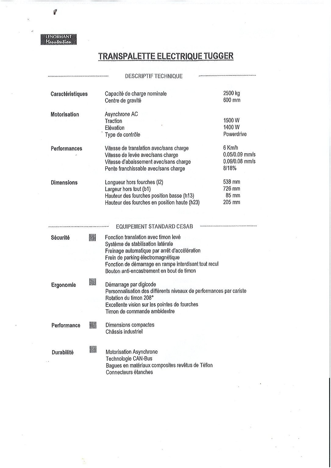 MarqueCESABHauteur de levée4.5Capacité de levage1200ÉnergieÉlectrique