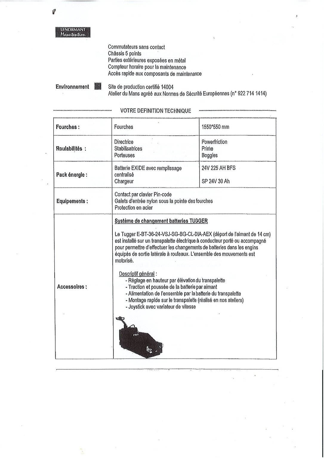MarqueCESABHauteur de levée4.755Capacité de levage1400ÉnergieÉlectrique