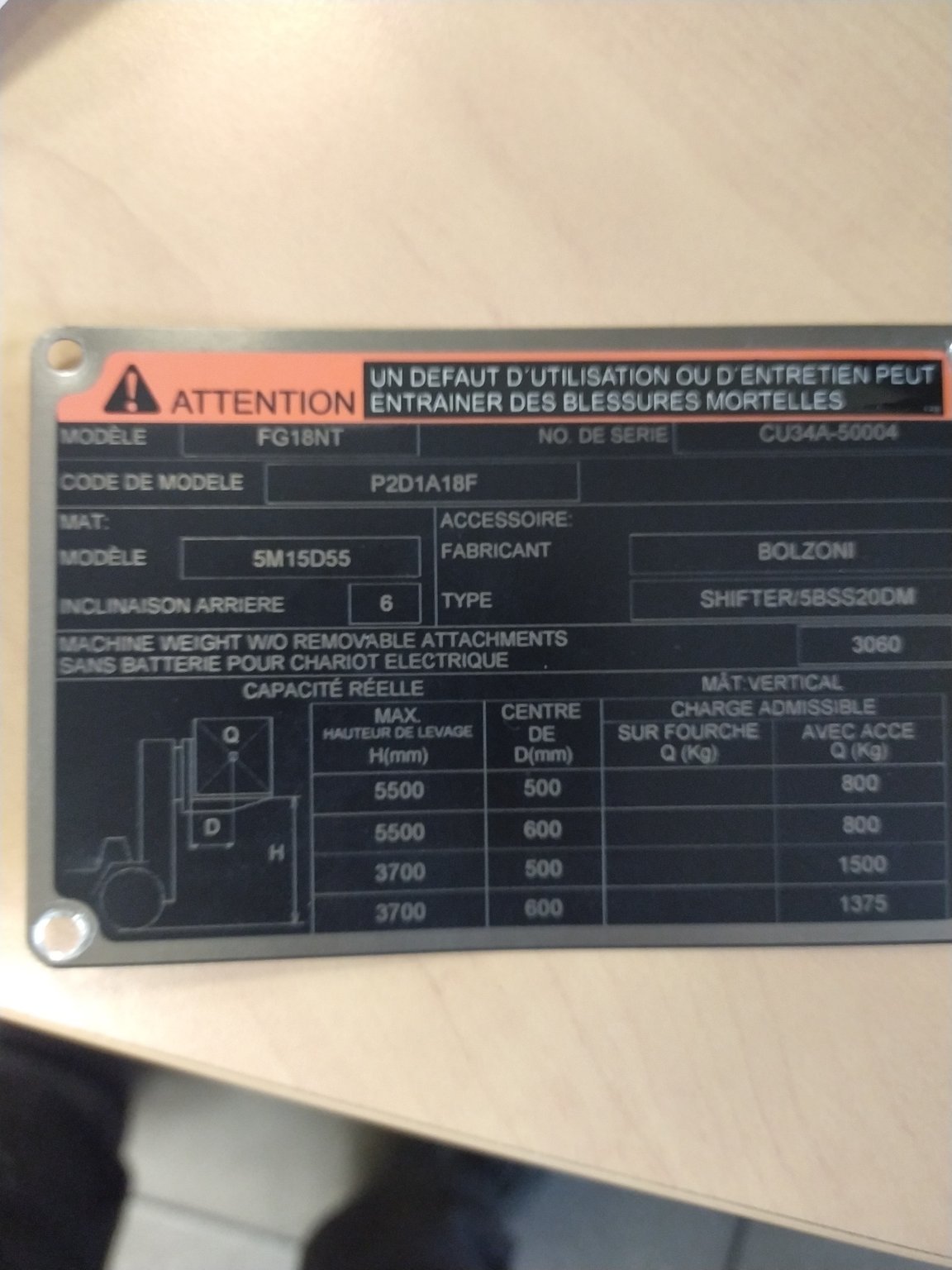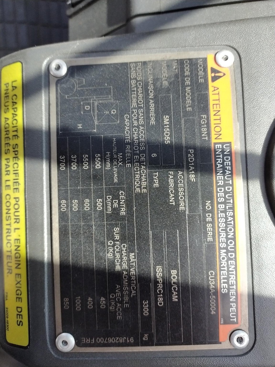 MarqueNissanHauteur de levée4.75Capacité de levage2500ÉnergieGaz