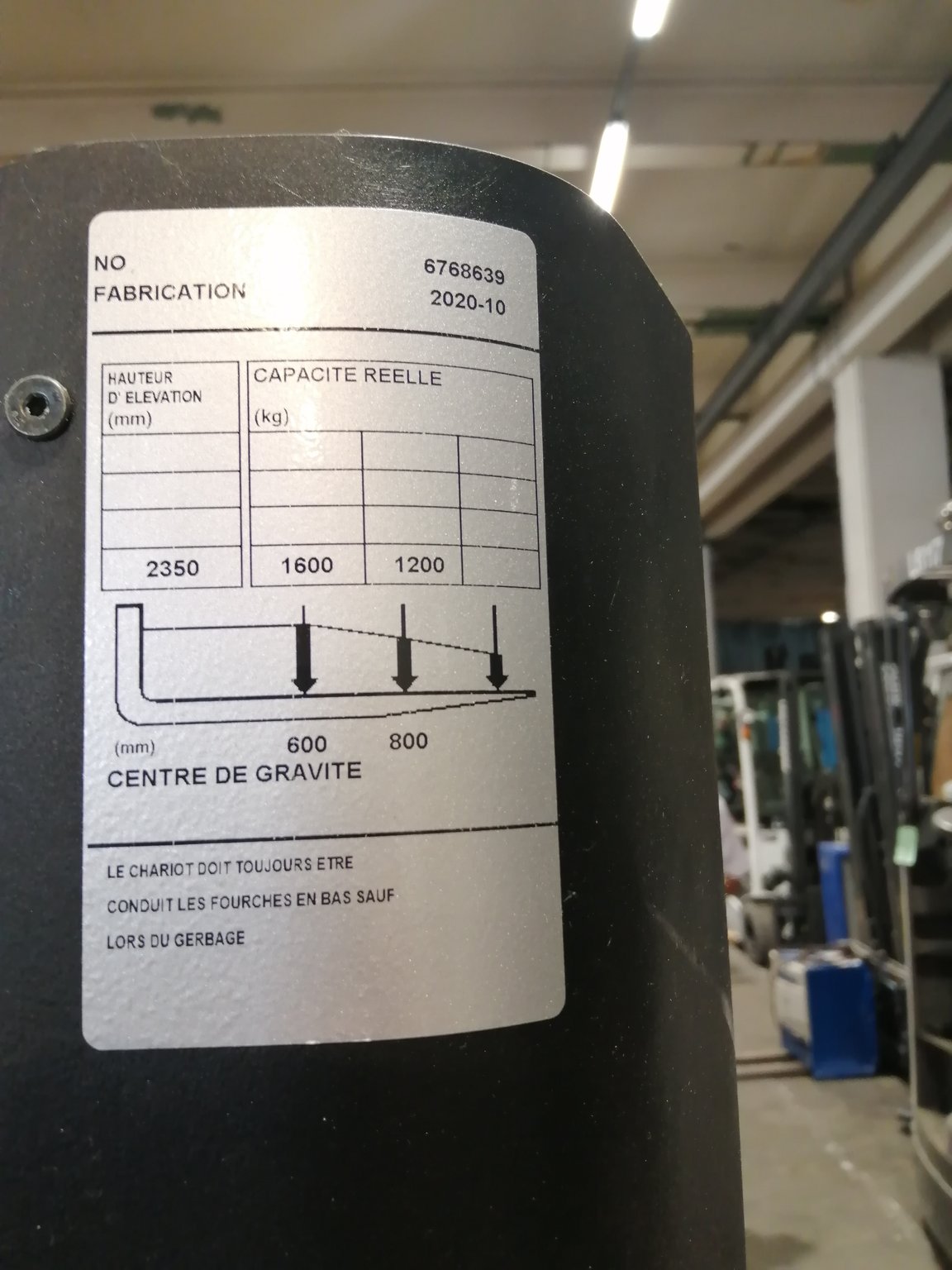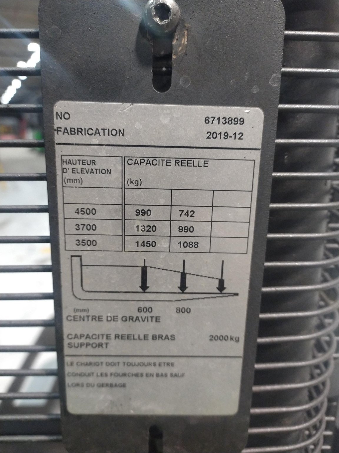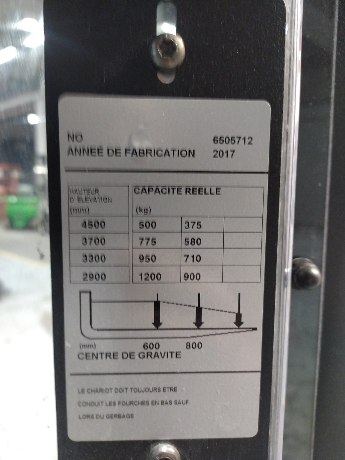 MarqueCESABHauteur de levée4.5Capacité de levage1200ÉnergieÉlectrique