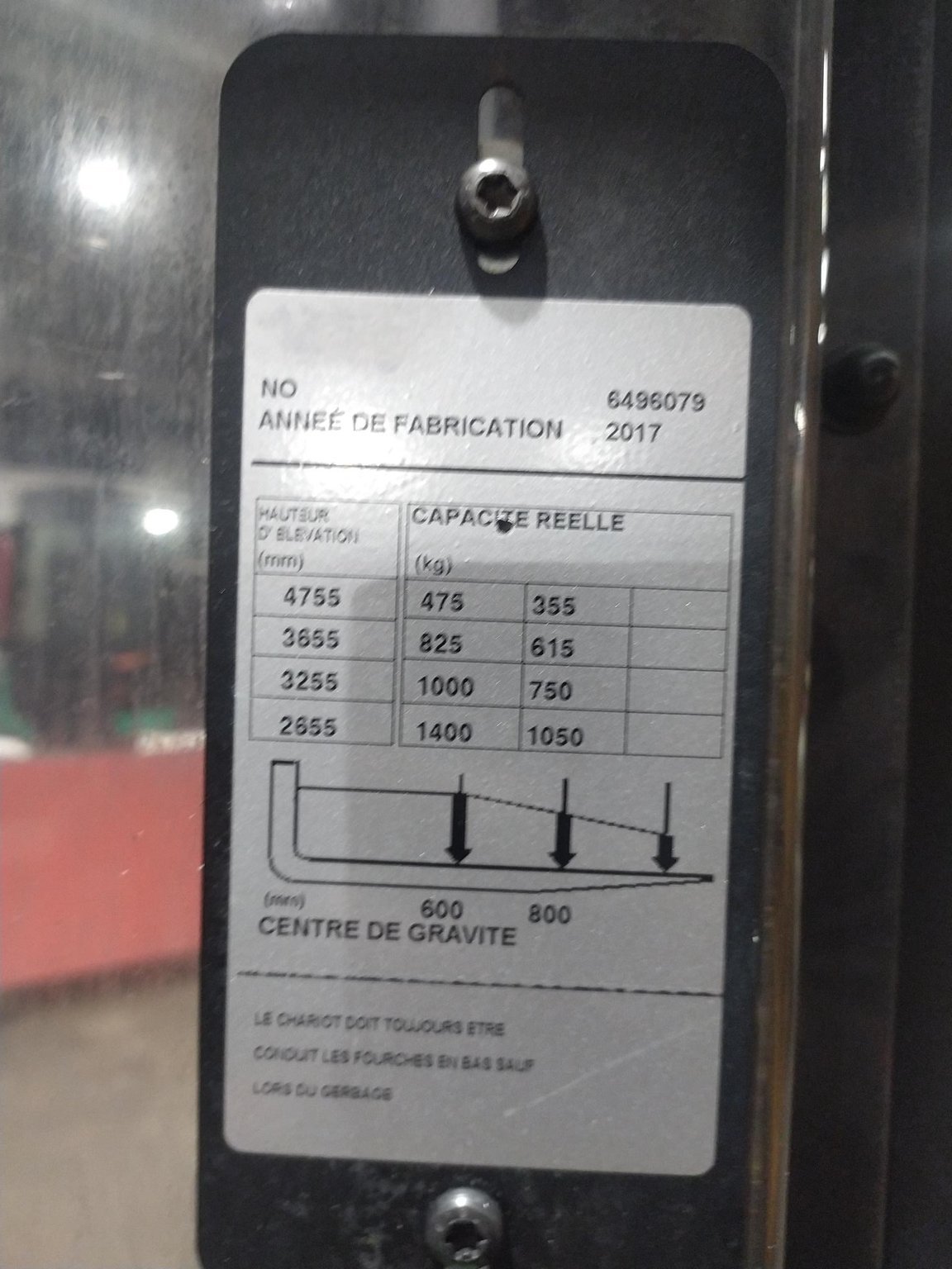MarqueCESABHauteur de levée4.755Capacité de levage1400ÉnergieÉlectrique