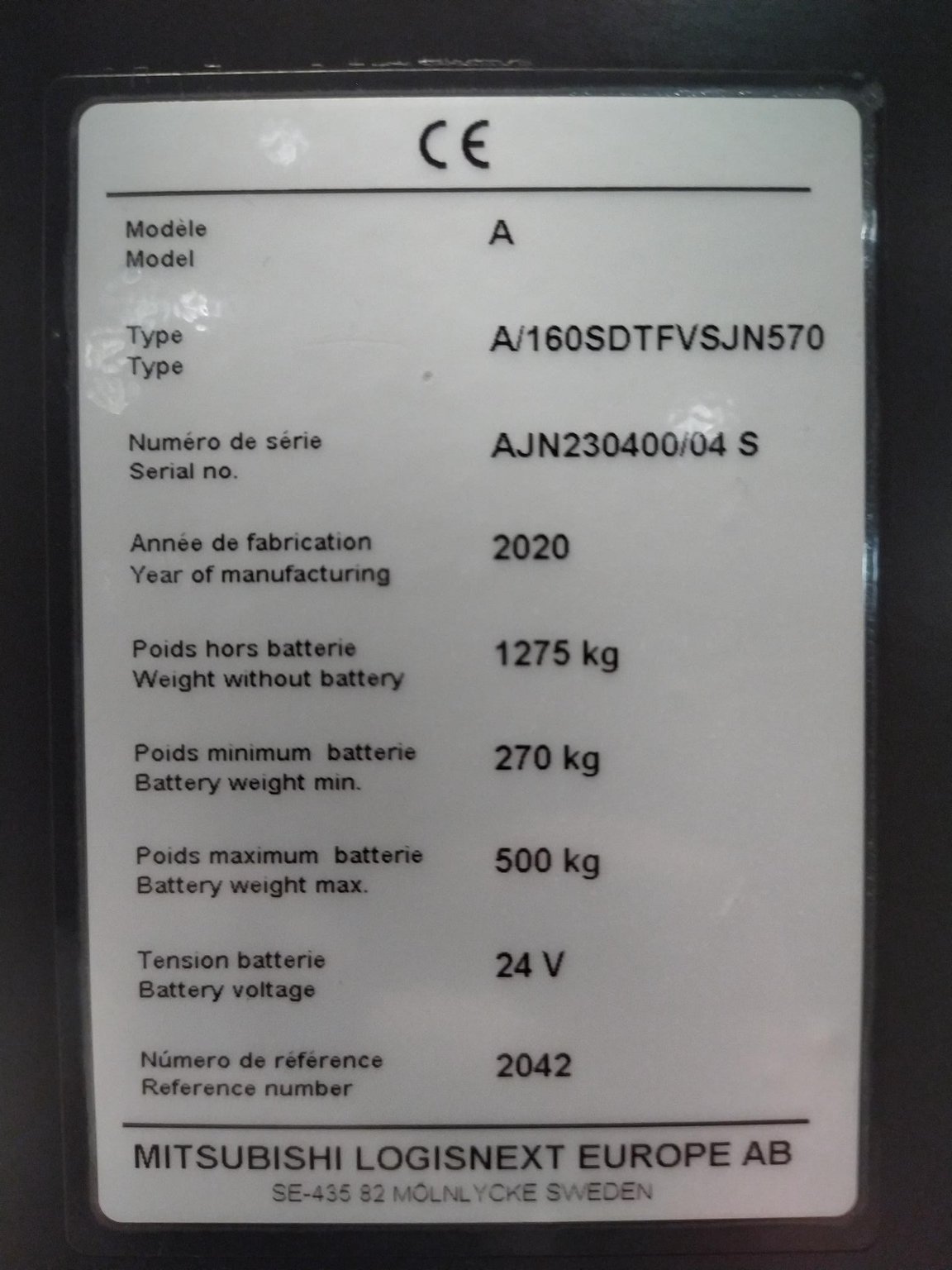 MarqueCESABHauteur de levée2.35Capacité de levage1600ÉnergieÉlectrique