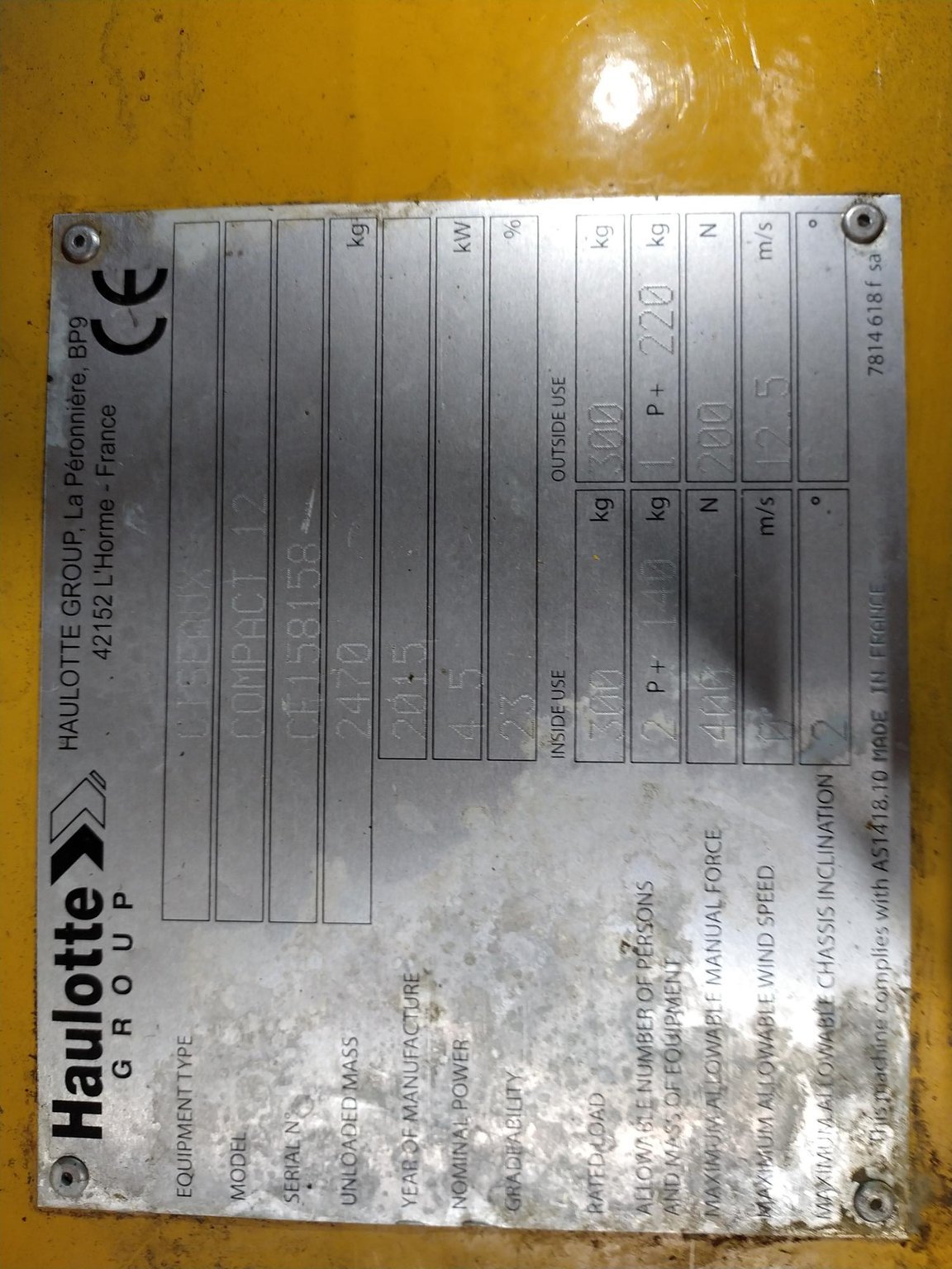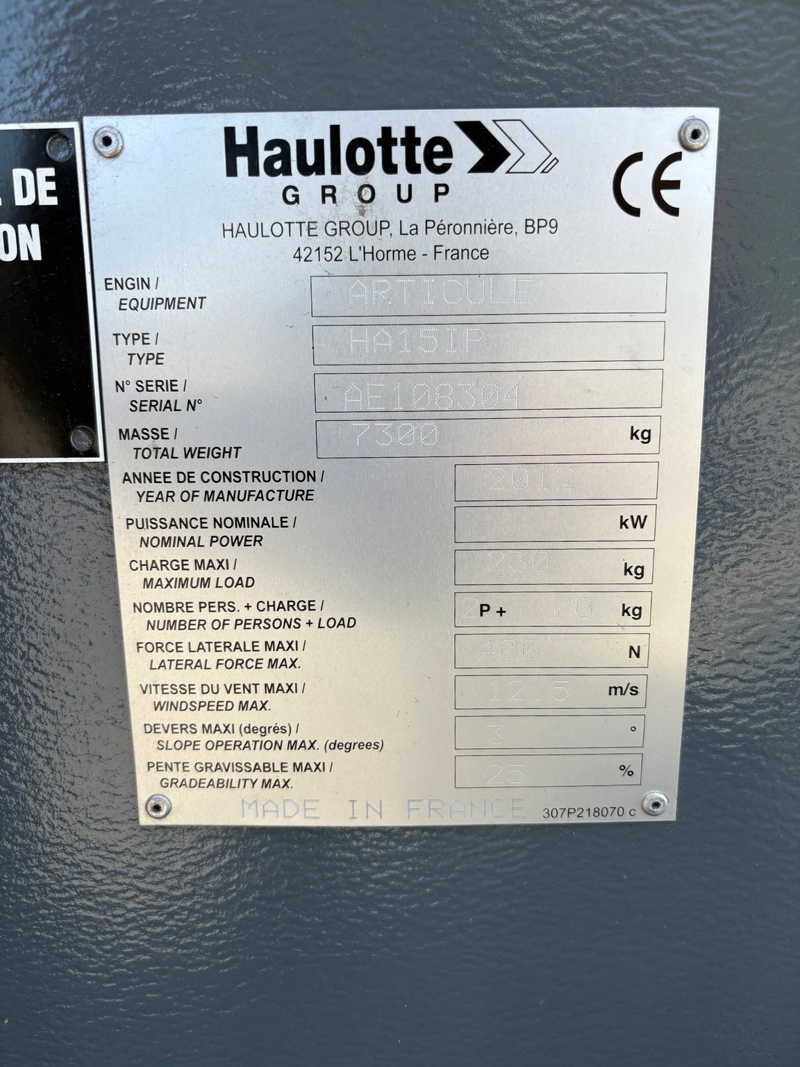 MarqueHaulotteRéférenceF0806ÉtatAnnée2015Heures60 h