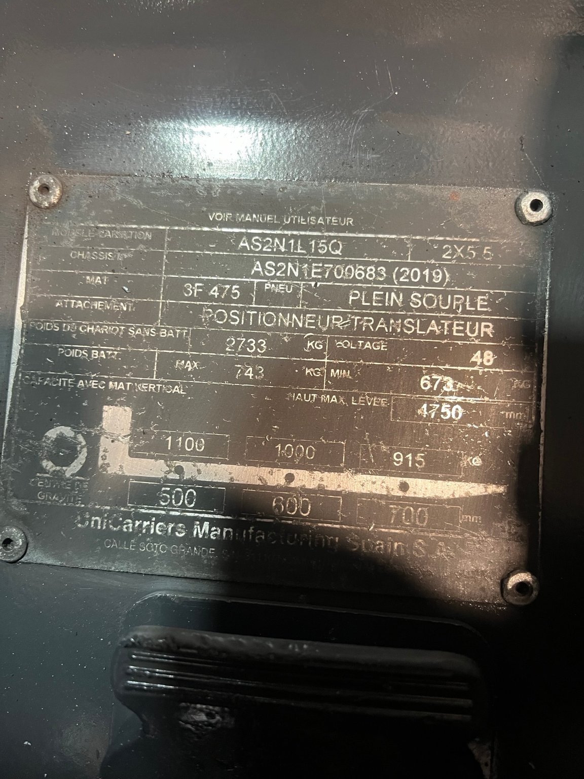 MarqueUniCarriersHauteur de levée5400Capacité de levage1200ÉnergieÉlectrique