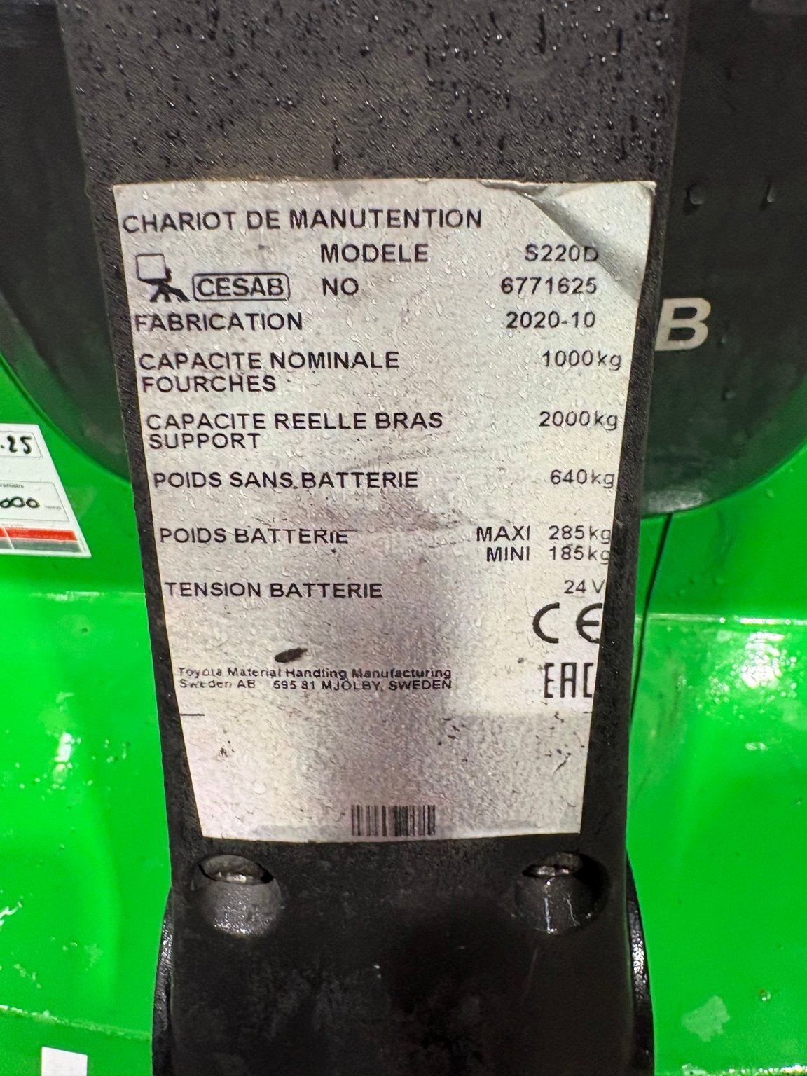 MarqueCESABHauteur de levée4.365Capacité de levage1400ÉnergieÉlectrique