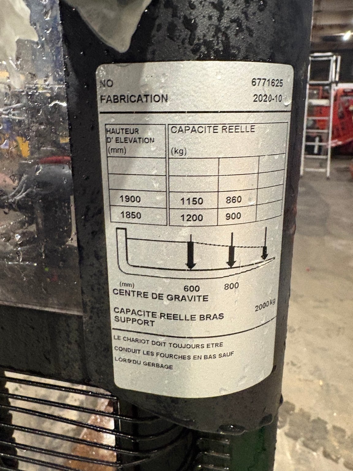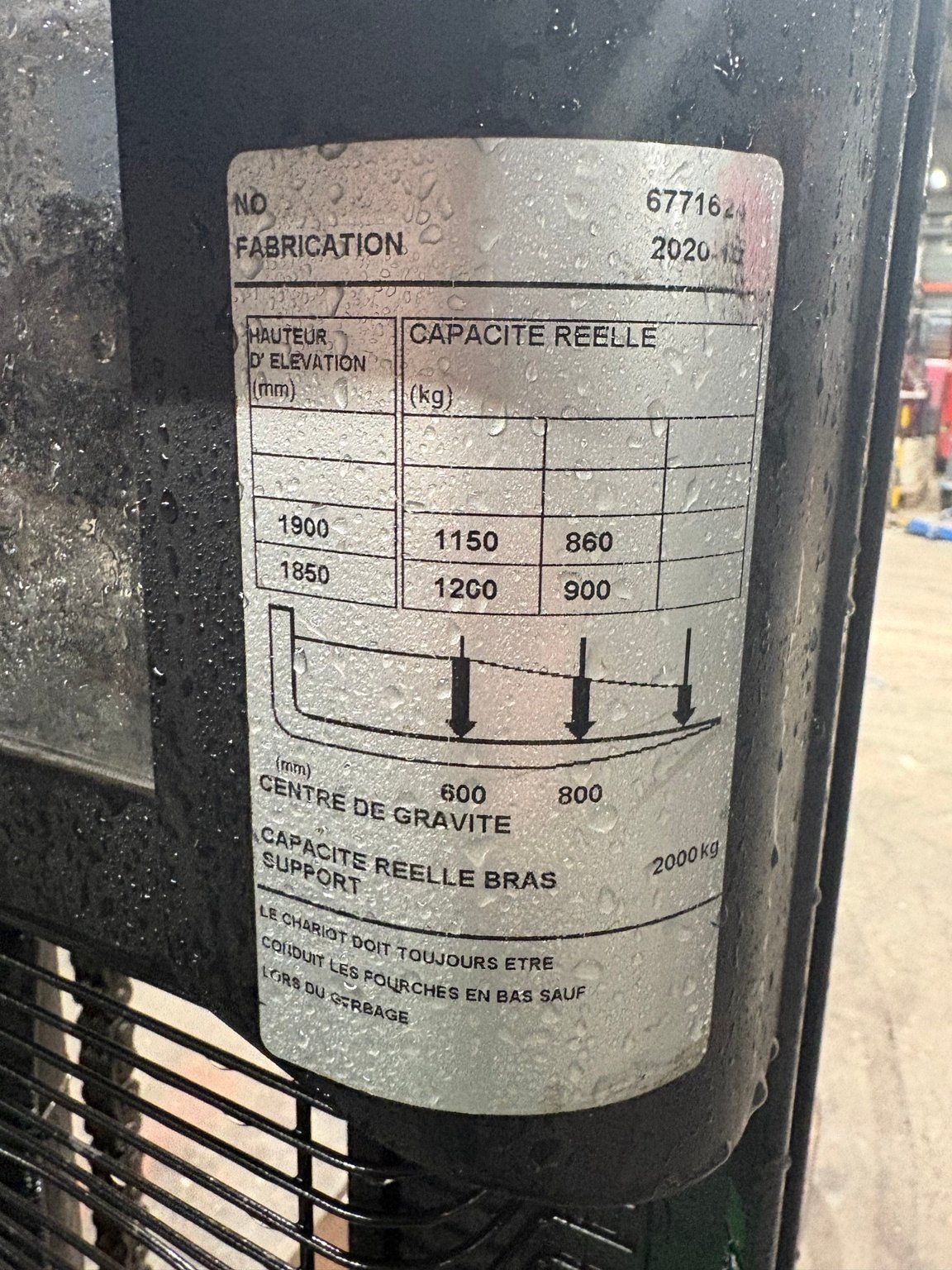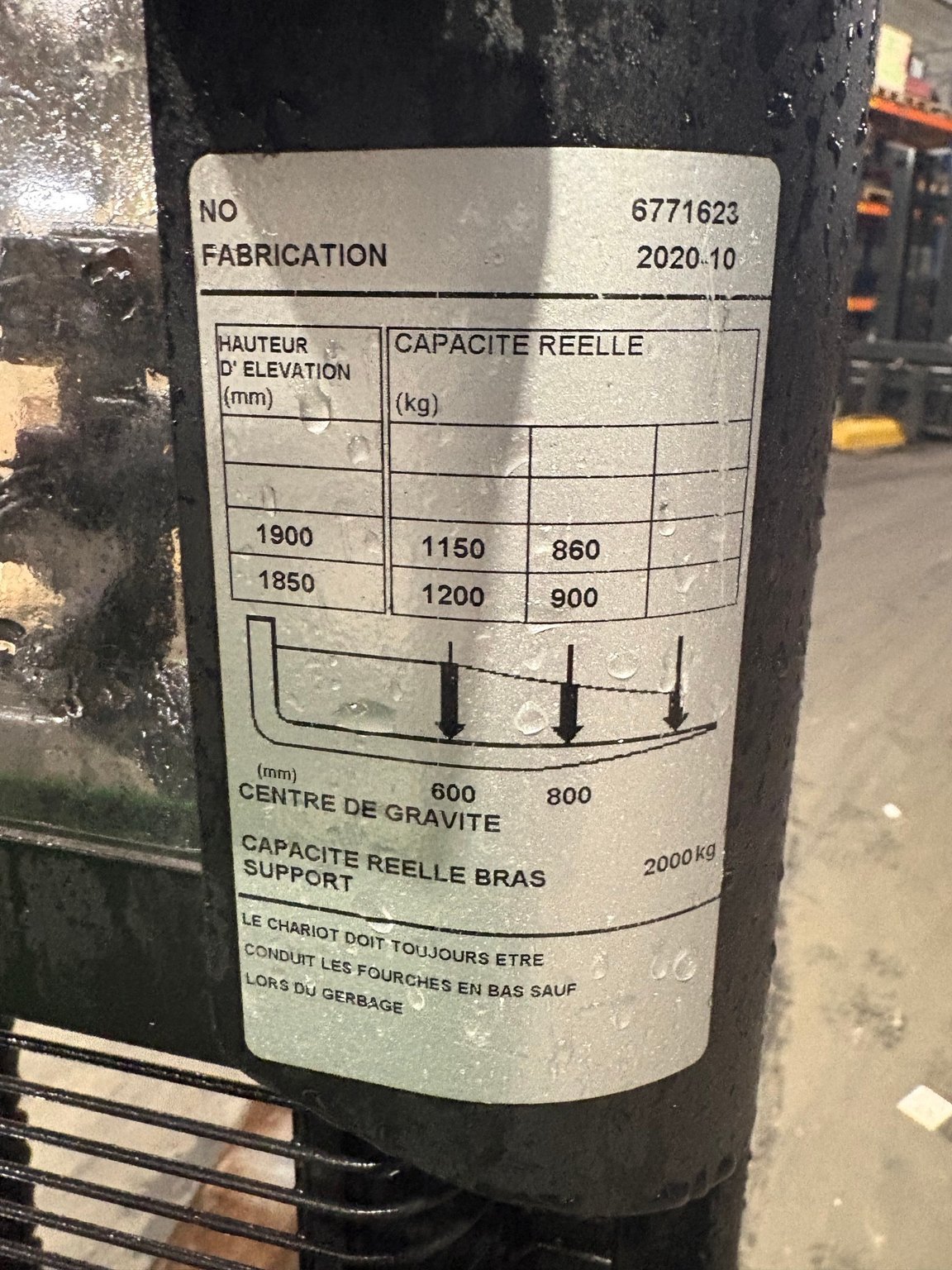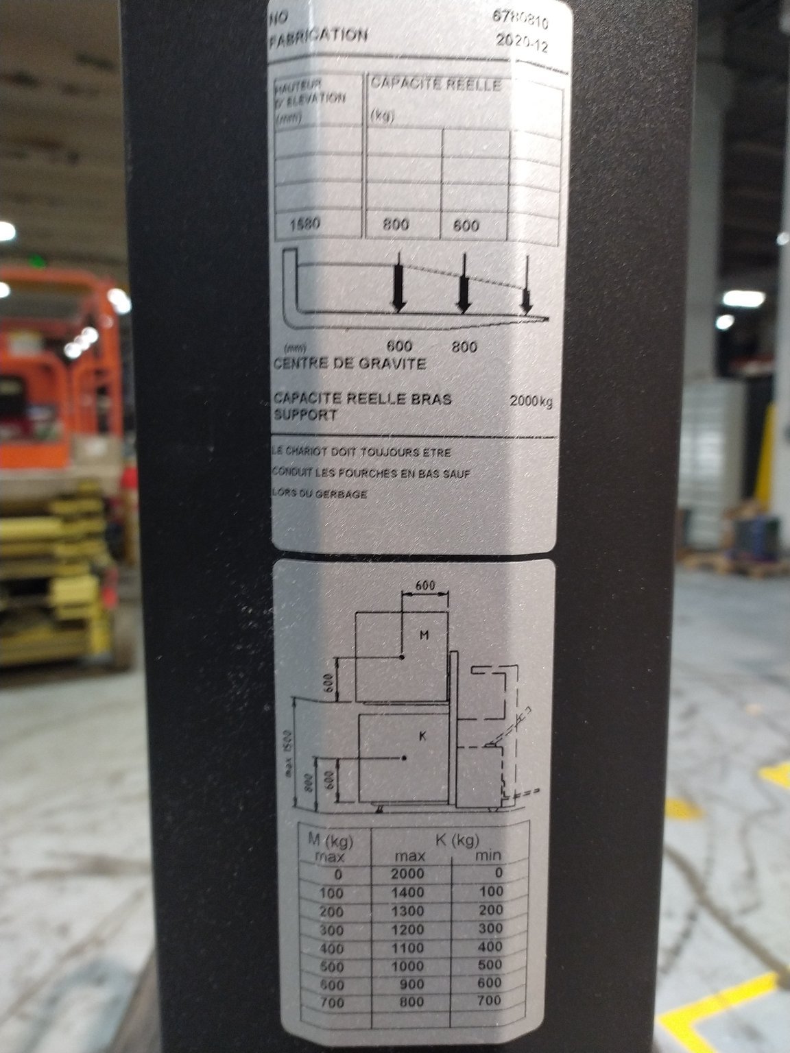 MarqueNissanHauteur de levée7000Capacité de levage1500ÉnergieÉlectrique